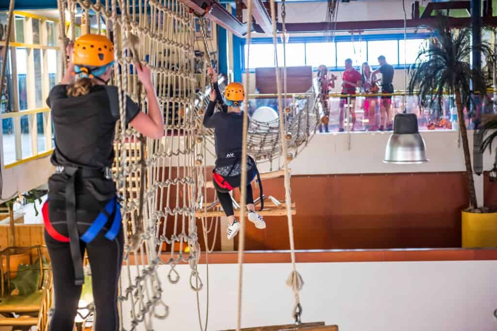 Voor de waaghalzen hang je gezekerd hoog boven aan het plafond. Bestorm de baan als een angst geegner!